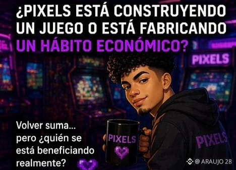 Lo que más me ha movido la cabeza con Pixels no es el token, ni la estética, ni siquiera el hecho de que esté en Web3. 🦀 Es la sensación de que el juego está intentando convertir el regreso en algo valioso. Y eso aunque suena bonito, también abre una pregunta bastante seria: ¿estamos viendo un juego de verdad o estamos viendo una estructura que usa el lenguaje del juego para crear una costumbre económica? Porque no es lo mismo. Yo veo una diferencia clara entre jugar porque te diviertes y volver porque el sistema ya te acostumbró a que volver es parte del valor. 📈📉 Pixels parece moverse en esa línea fina. Por momentos se siente como un juego relajado, casi inocente. Pero cuando empiezas a mirar más de cerca, ves que la repetición, la presencia y la constancia tienen muchísimo peso dentro de la experiencia. Entonces uno se pregunta si el corazón del proyecto es el entretenimiento o si el entretenimiento es solo la puerta para que la permanencia funcione mejor.