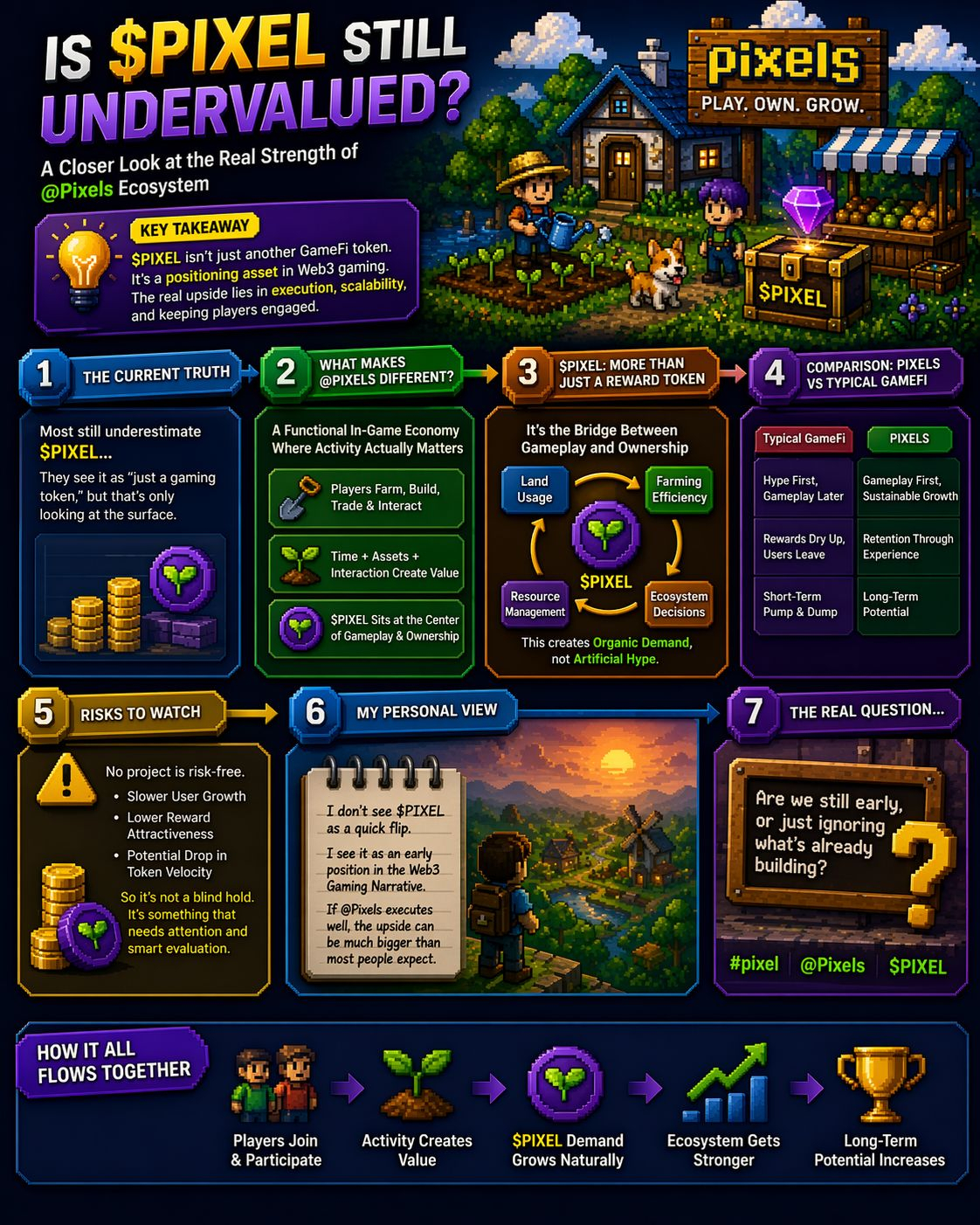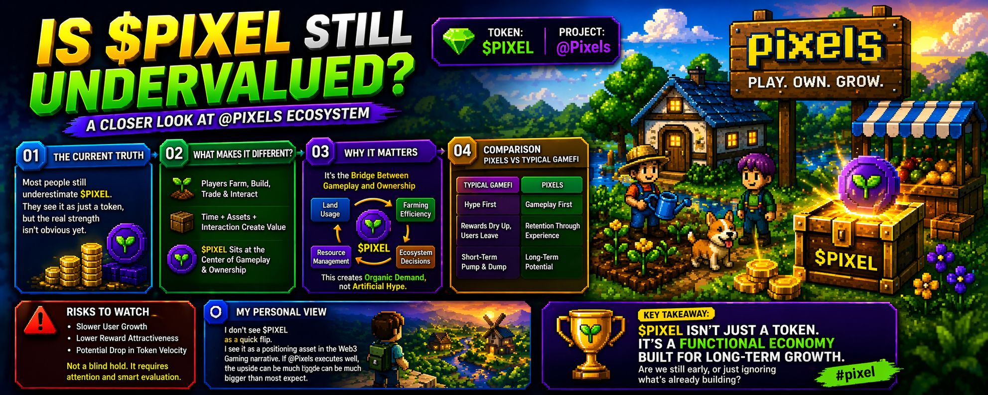 My personal view: $PIXEL is not a short-term flip. It’s a positioning asset in the Web3 gaming narrative. The real upside depends on how well @Pixels scales its ecosystem and keeps players engaged.