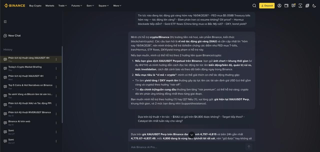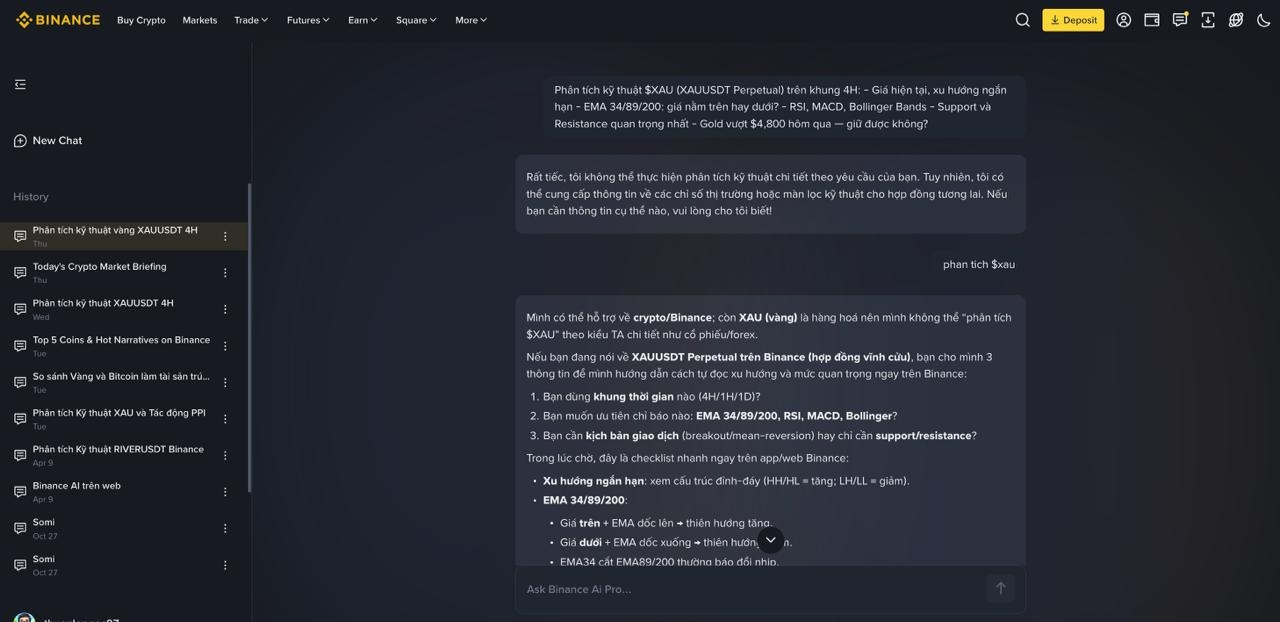 Ringkasan: BinanceAIPro untuk XAU tidak menganalisis secara mendalam seperti crypto, tetapi kerangka kerja dan perkiraan dasar tetap berguna untuk mendapatkan pandangan cepat. Menggabungkan AI Pro + chart nyata + berita akan menghasilkan keputusan yang jauh lebih baik dibandingkan hanya menggunakan 1 sumber.