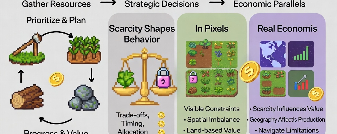 It’s easy to overlook how something as simple as resource gathering can evolve into a structured system of decision-making. At first, actions like farming or collecting materials appear repetitive. But once availability becomes uneven, the system begins to resemble something more deliberate.