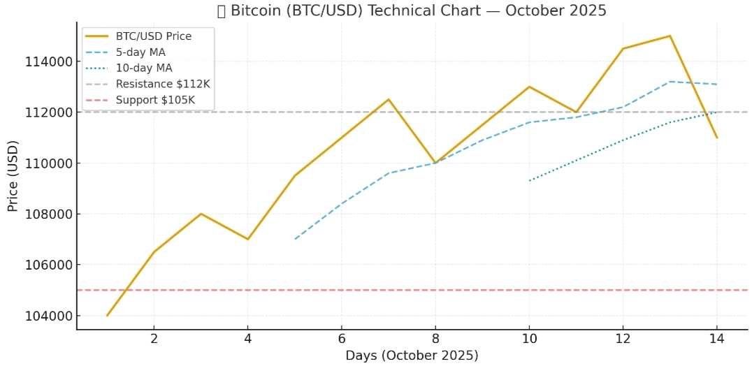 💹 Analisis Teknikal Bitcoin (per 22 Okt 2025)