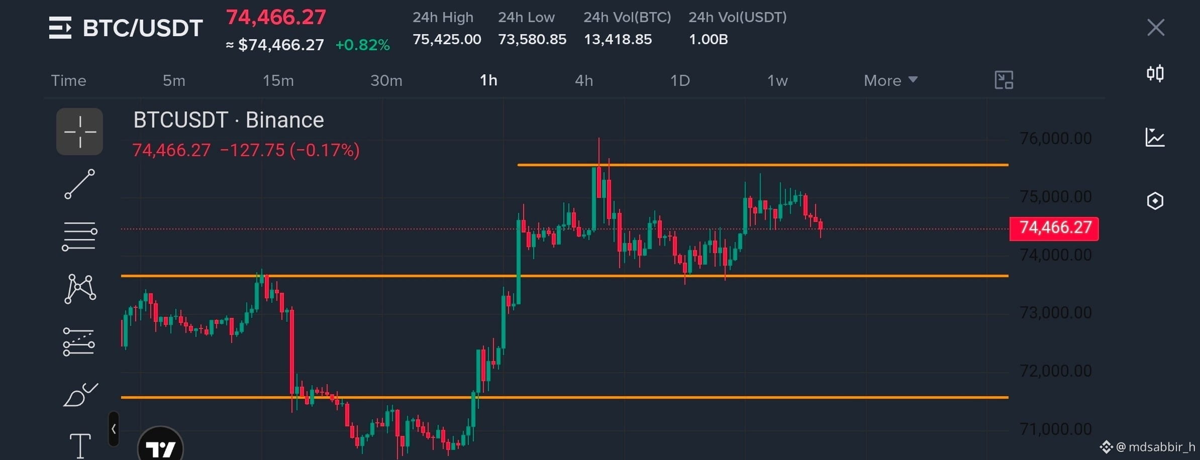We are clearly in an indecisive zone between 74K–75K with prolonged consolidation.