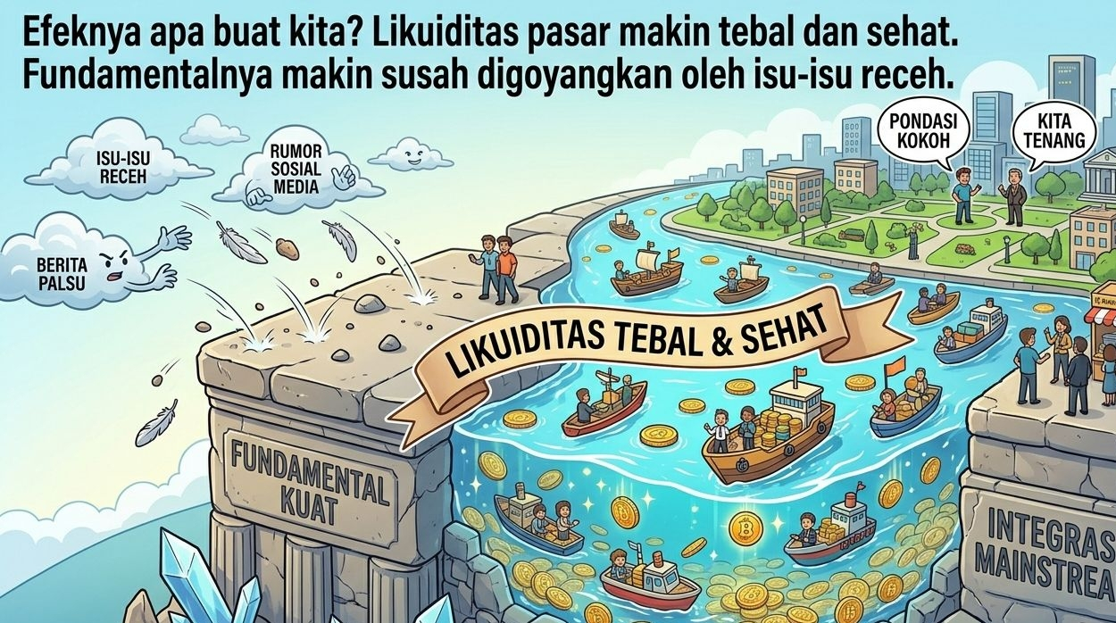 Efeknya apa buat kita?. "Likuiditas pasar makin tebal dan sehat. Fundamentalnya makin susah digoyangkan oleh isu-isu receh."