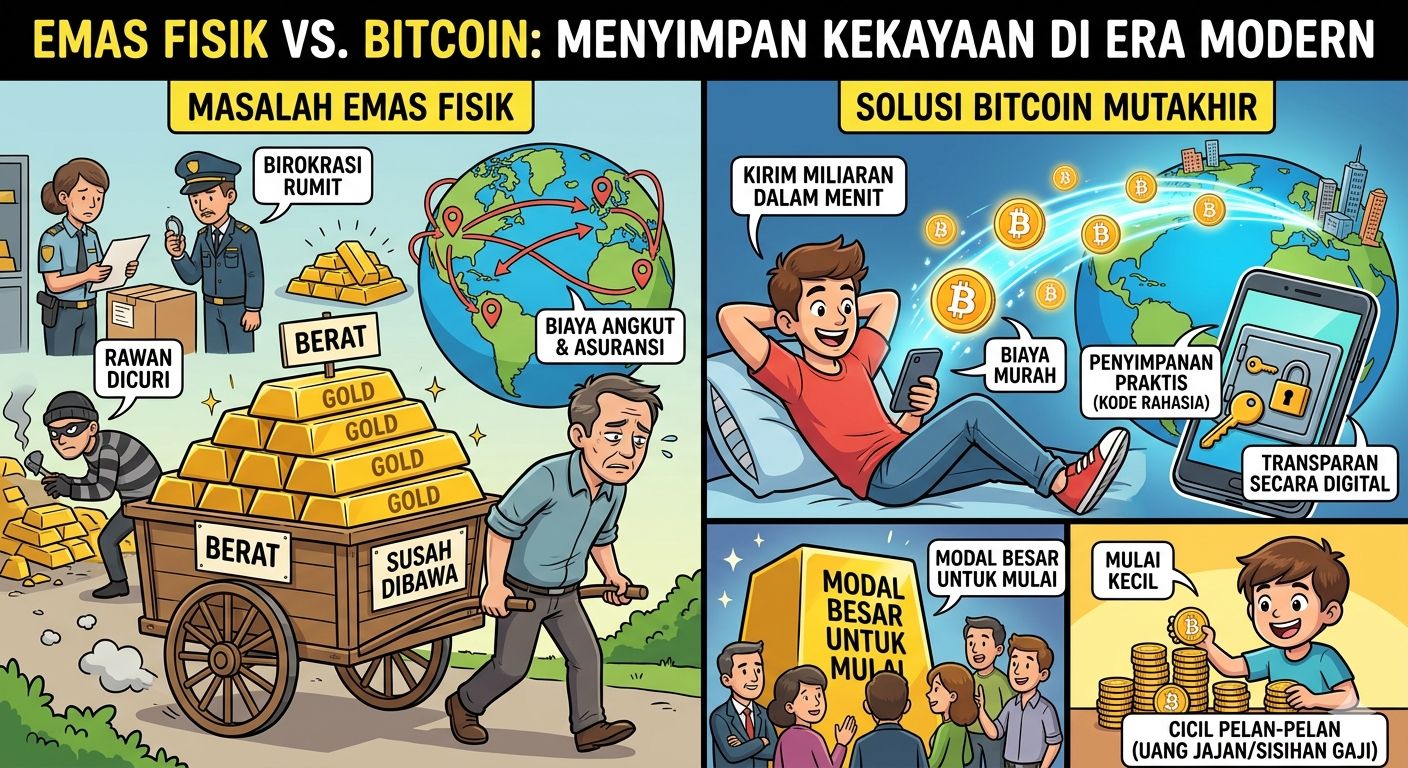 Emas fisik itu berat, rawan dicuri, dan susah dibawa-bawa. Kalau kamu mau memindahkan aset senilai ratusan juta ke luar negeri pakai emas, urusan birokrasi, biaya angkut, dan keamanannya bakal bikin pusing kepala.