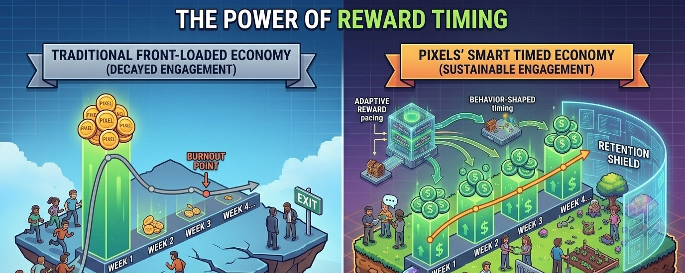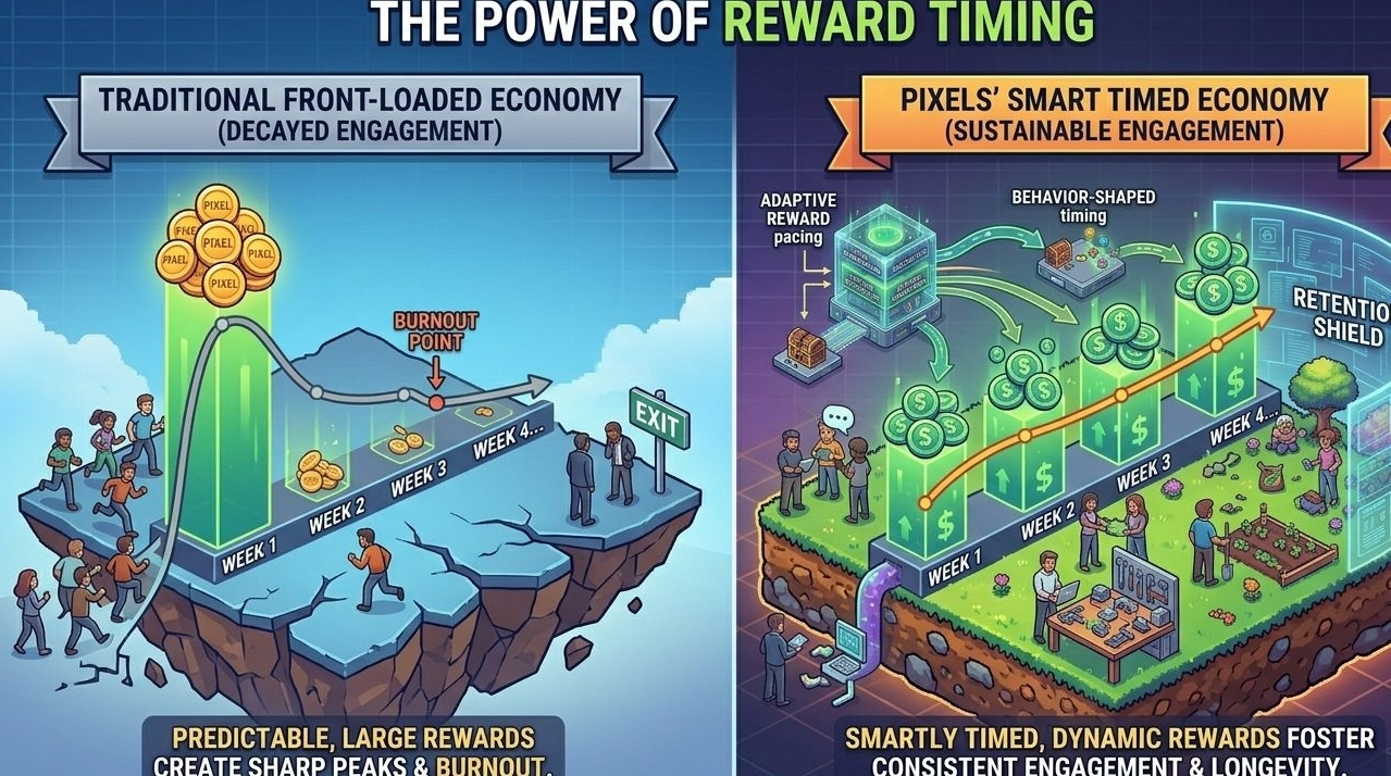 When rewards are only about size, players rush to maximize them as quickly as possible. When timing is considered, the experience becomes more about consistency. I’ve noticed myself logging in regularly, not because I’m chasing a big payout, but because the progression feels steady and worth continuing.