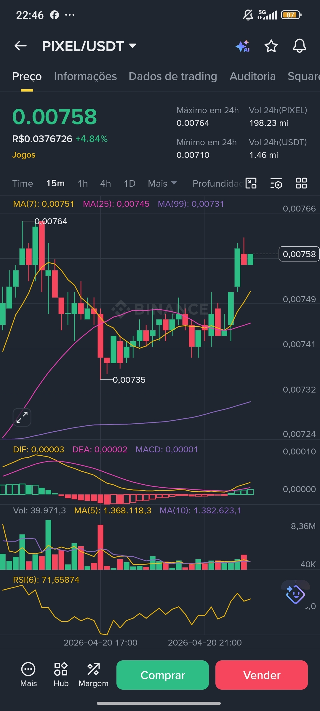 Olhando o gráfico agora, vejo PIXEL negociando na faixa de $0,0075 — e minha primeira reação não foi frustração, foi curiosidade. Porque esse preço, diante do que está acontecendo no ecossistema, parece uma dessincronização clássica entre fundamento e cotação.