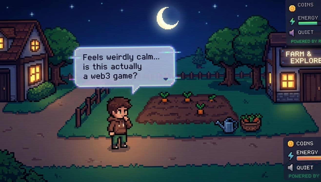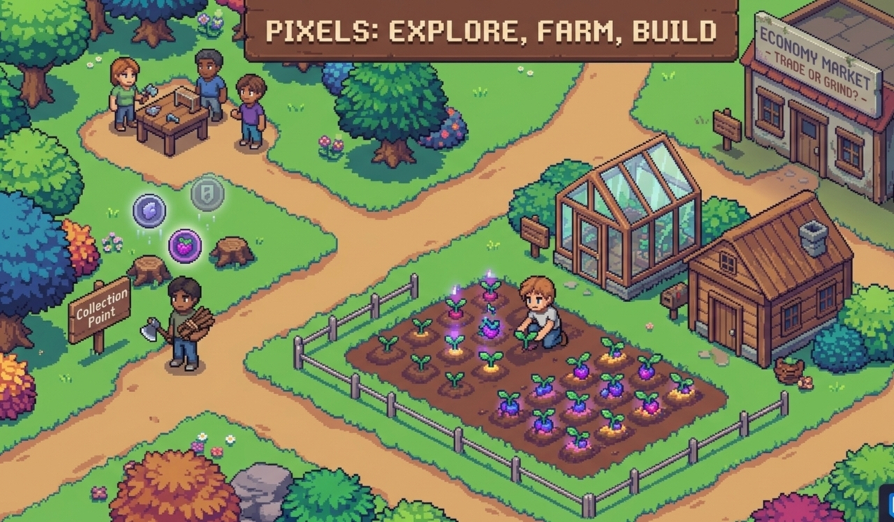 I mean that’s kinda the point i guess. @Pixels isn’t trying to confuse you with heavy mechanics or overcomplicated token stuff. it’s more like a chill open world where you farm, explore, build things… and yeah, the blockchain part just sits quietly in the background. powered by Ronin and all that, but you don’t feel it in your face every second, which is honestly refreshing.