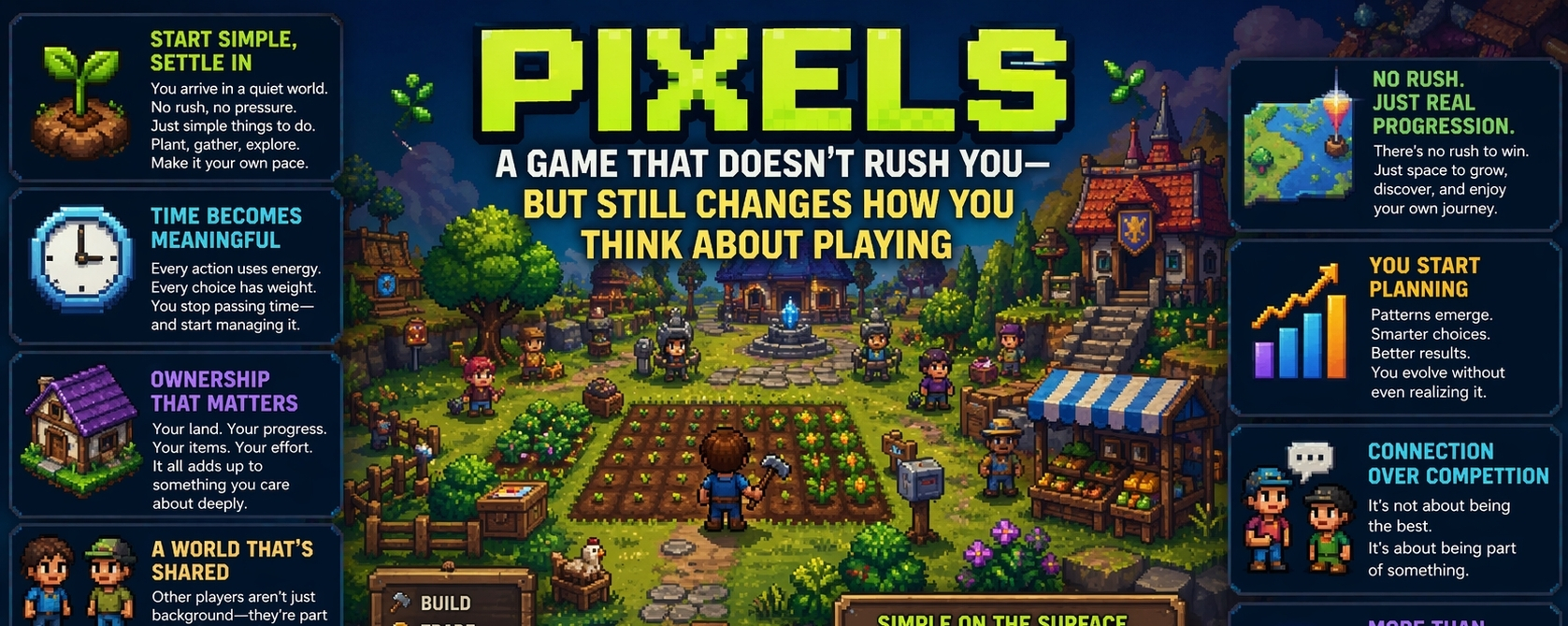 In the end, Pixels isn’t trying to rush you into anything. It just lets you stay long enough to understand that what feels simple on the surface can slowly become something much more meaningful underneath.