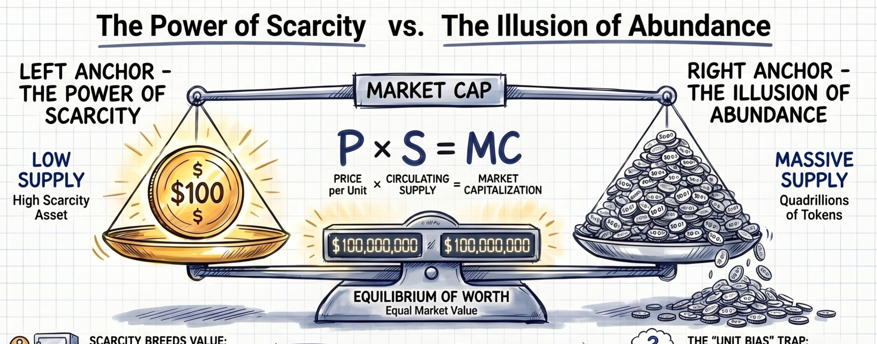 2️⃣ The Illusion of Abundance: Some projects create quadrillions of tokens to make the price look "cheap" (e.g., $0.000001). This is a psychological trick called Unit Bias.