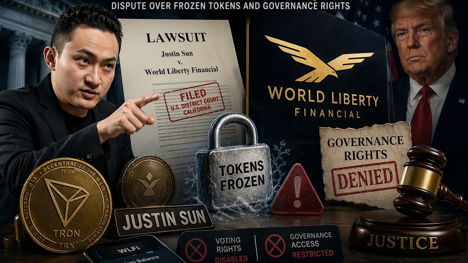 The hashtag refers to a breaking legal dispute where crypto entrepreneur Justin Sun has officially filed a lawsuit against World Liberty Financial (WLFI), a Trump linked crypto venture.