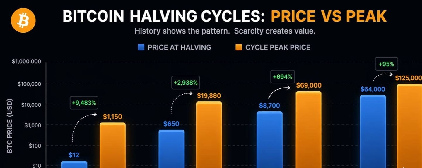 Every halving reduces new supply entering the market. As long as demand remains stable — it doesn’t even need to surge — price tends to trend higher over time. That’s why long-term cycle analysis still matters.