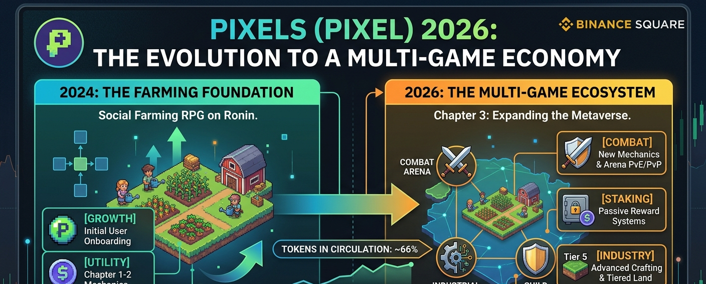 The Pixels ecosystem has undergone a significant transformation, moving beyond its initial farming roots to become a cornerstone of the Ronin Network. Recent updates have focused on refining the $PIXEL token utility and enhancing the "Chapter 2" mechanics, which introduced more complex crafting tiers and a revamped task system. By prioritizing resource scarcity and tiered progression, @Pixels _ has successfully stabilized its in-game economy, making it more resilient against the inflationary pressures that typically plague Web3 titles. The integration of guild structures has further deepened the social layer, incentivizing collective strategy over isolated grinding.Looking ahead, the project is doubling down on interoperability and scalability. The team at @Pixels _ is actively expanding its "Plug and Play" NFT integration, allowing holders from various external collections to utilize their assets as avatars within the metaverse. This strategy, combined with frequent live events and a sustainable play-to-earn model, ensures a constant influx of new users while retaining the core community. As the project matures, the focus remains on building a "forever game" that balances casual accessibility with the sophisticated financial incentives inherent to decentralized gaming.$PIXEL