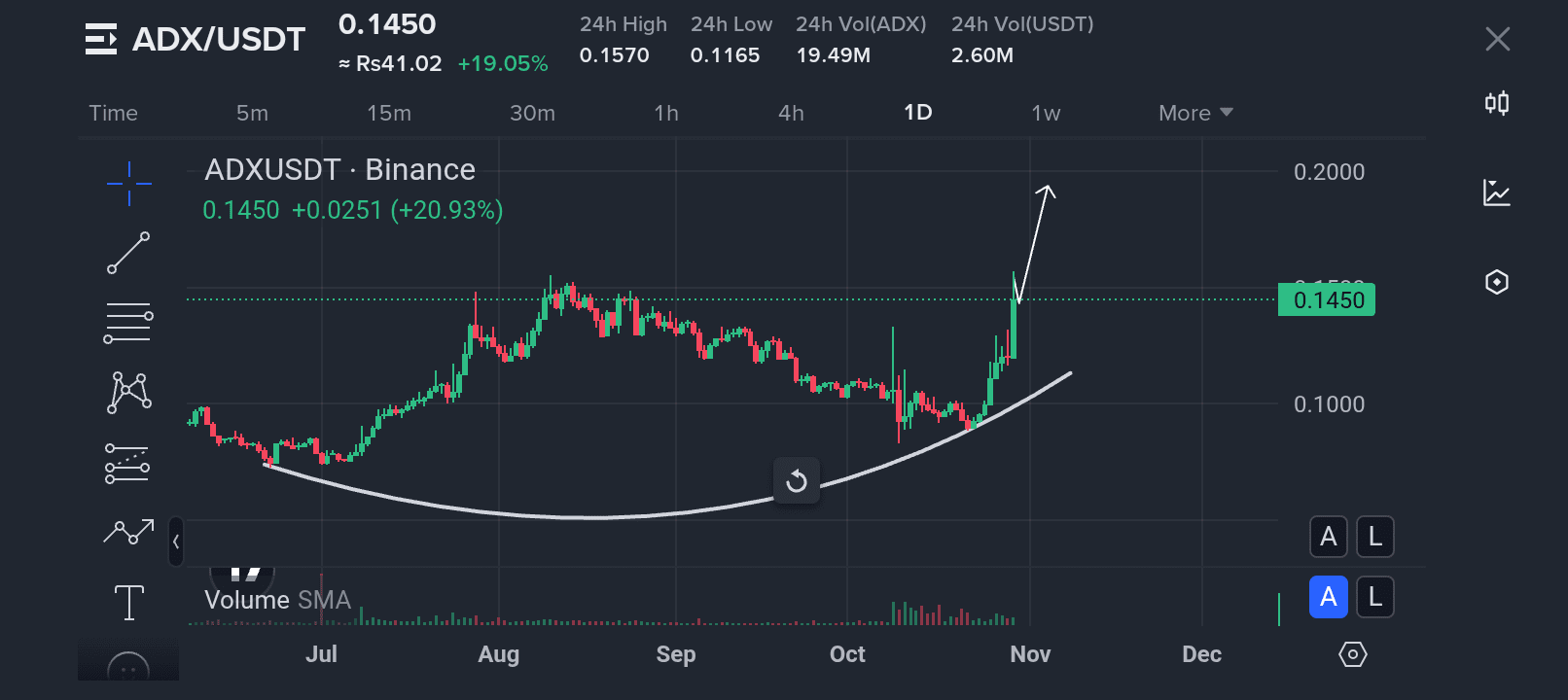 Jika ADX dapat menembus dan bertahan di atas $0.16 dengan volume yang baik, kita bisa melihat kelanjutan menuju $0.20 atau bahkan lebih tinggi.