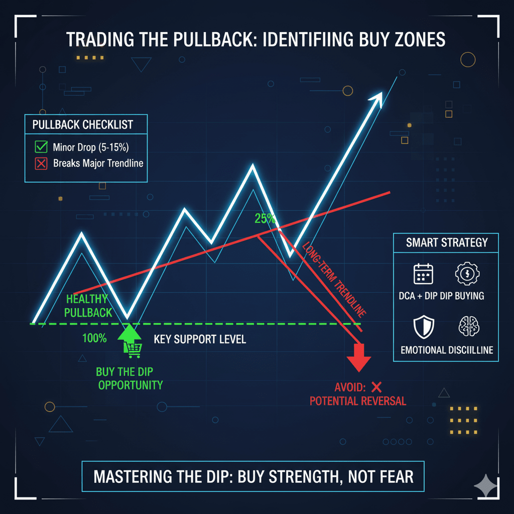 Memahami penarikan kembali pasar membantu trader tetap tenang selama penurunan jangka pendek dan mengenali peluang strategis. Alih-alih takut pada setiap penurunan, investor cerdas mencari entry value dan menggunakan penarikan kembali untuk memperkuat posisi mereka.