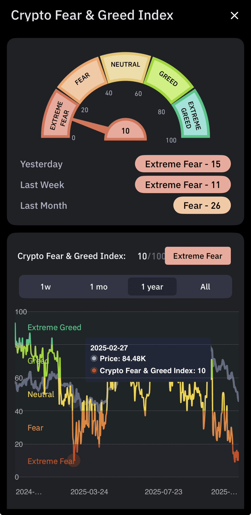 Kripto telah mencapai TAKUT & KEDULURAN = 10.
