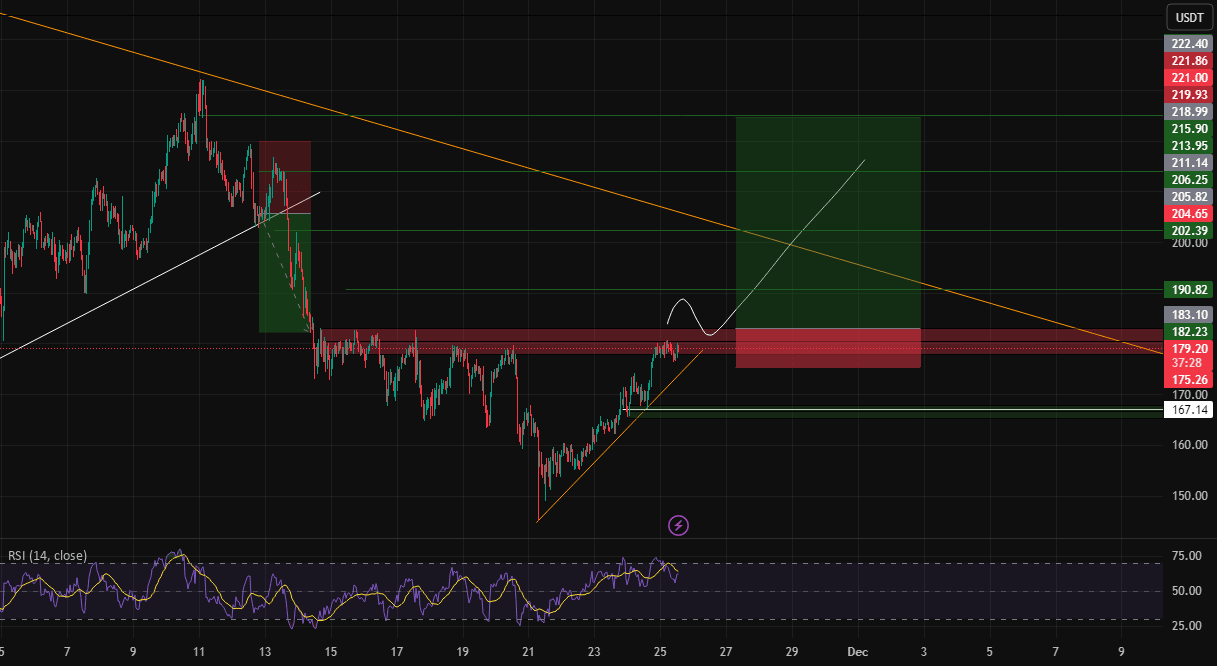 AAVE menunjukkan kelanjutan bullish yang kuat setelah mempertahankan zona permintaan 182–184, membentuk struktur higher-low yang bersih pada kerangka waktu yang lebih rendah.