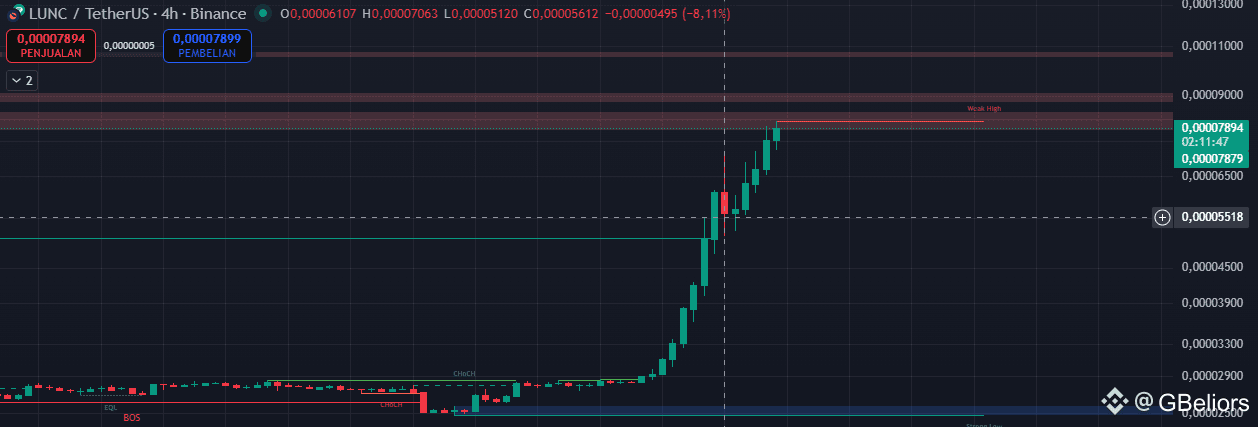 Momentum bullish memang tampak agresif, tetapi indikator harga sudah berada di zona jenuh beli ekstrem, di mana reli semacam ini biasanya kehilangan tenaga atau bahkan berbalik arah dengan cepat. Ketika harga naik secepat ini tanpa dukungan volume organik yang solid, pasar sedang bermain di wilayah yang rapuh juga lebih dekat ke euforia daripada pertumbuhan. Rally LUNC kali ini lebih mencerminkan spekulasi liar dibandingkan confidence yang kokoh. Likuiditas yang tidak stabil dan minimnya fundamental yang mendukung menciptakan ketegangan antara hype dan realita ekonomi token tersebut. Ini bukan tren yang tumbuh dari kekuatan sistem, melainkan dari ekspektasi jangka pendek yang mudah runtuh ketika pasar kehilangan minat.