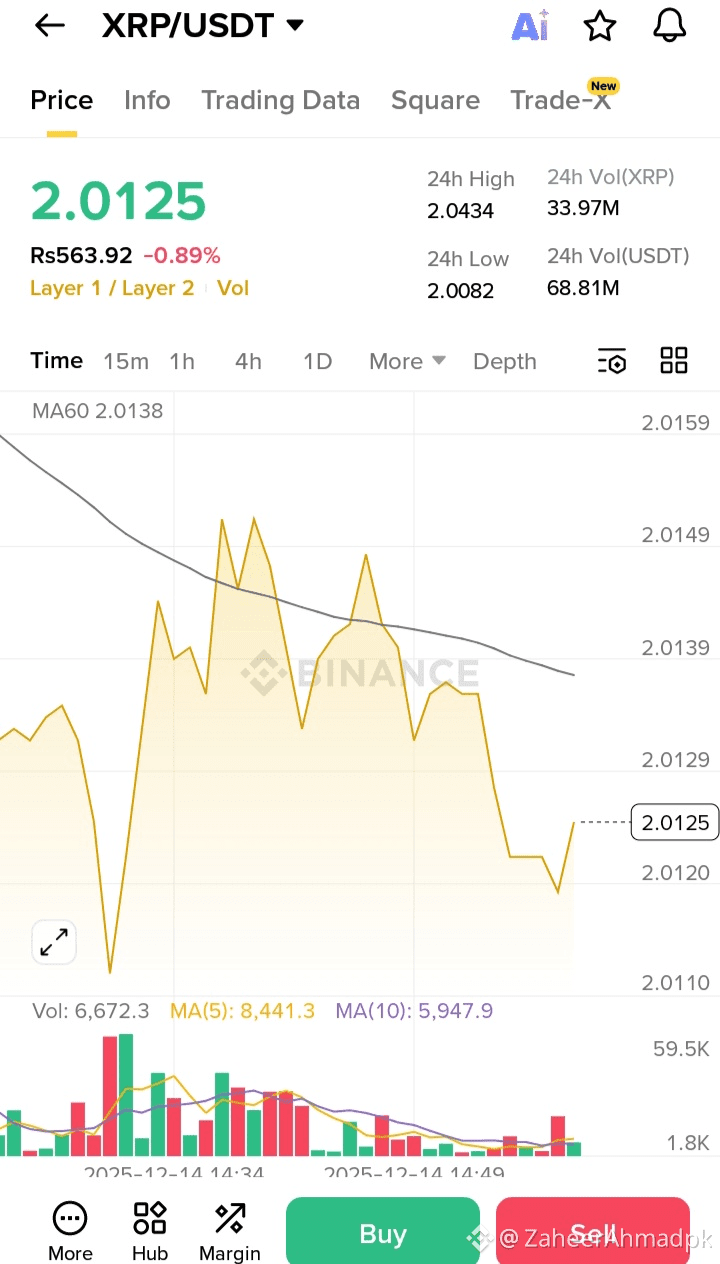 XRP is consolidating tightly around the $2.00 level, showing clear signs of absorption. Repeated lower wicks with quick recoveries suggest selling pressure is being absorbed.