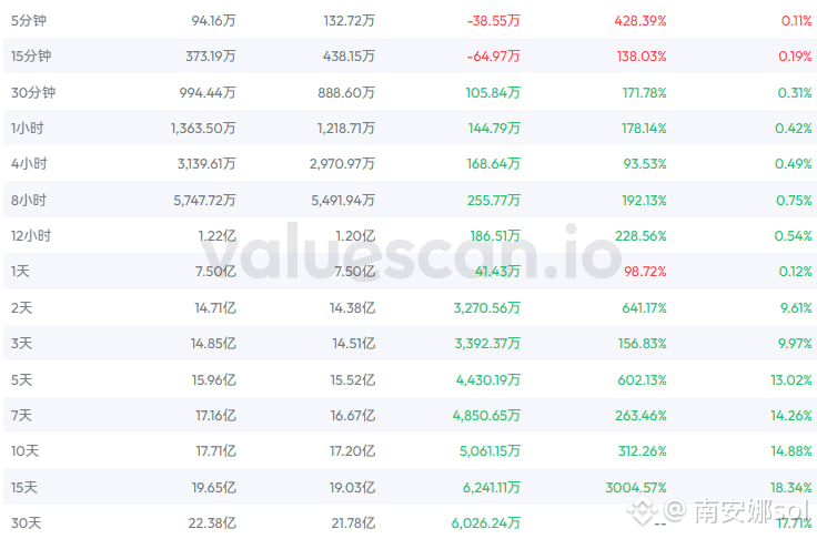 但从中期到长期(30分钟至30天):数据一片飘红!全部为资金净流入。其中,几个关键周期信号强烈: