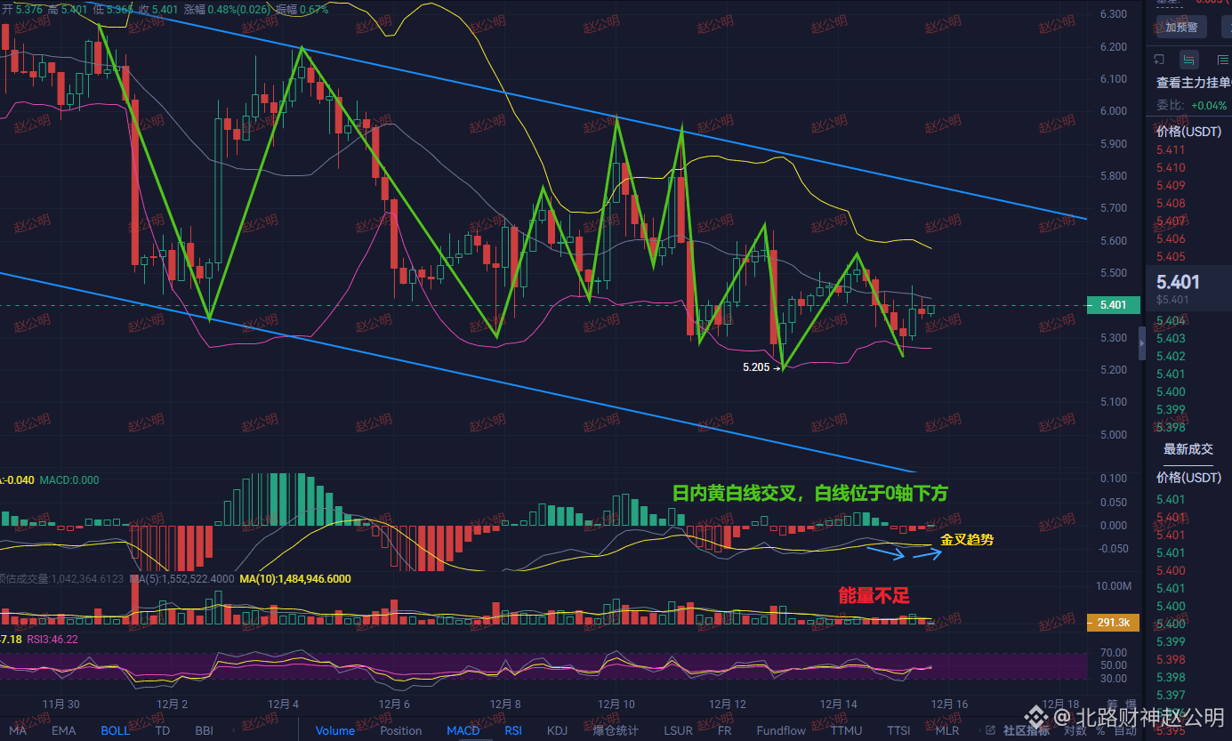 持仓的建议:必须放弃一切幻想。利用任何一次价格向 5.6至5.8 区域的反弹机会,坚决减仓或离场。不要期待巨鲸来救你,他们自身难保。