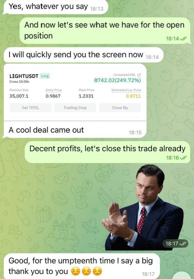 âKeuntungan yang layak, mari kita tutup perdagangan ini.â