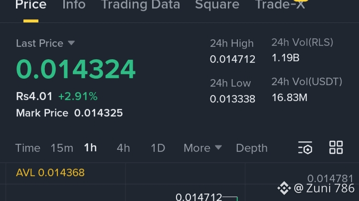 $RLS USDT saat ini diperdagangkan sekitar $0.01432, menunjukkan kenaikan intraday yang modest hampir +2.9%. Pada kerangka waktu 1 jam, aksi harga mencerminkan pemulihan jangka pendek yang jelas dari level terendah baru-baru ini di dekat $0.01334, diikuti oleh penarikan kembali setelah menguji level tertinggi intraday di $0.01471.