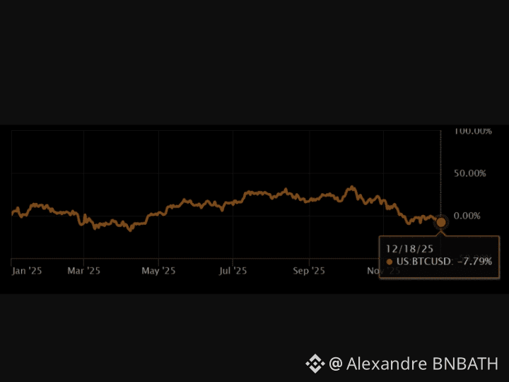 Diferente da euforia de ciclos anteriores, o BTC encerra este ciclo com uma variação negativa de -7,79% (dados de 18/12/25). Mas o que isso realmente significa para o mercado? 🧐