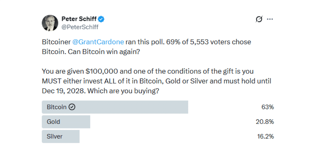 Menariknya, emosi publik juga mulai condong ke Bitcoin. Peter Schiff, pendukung emas lama, seringkali mengecam Bitcoin, menyebutnya sebagai alat spekulasi.