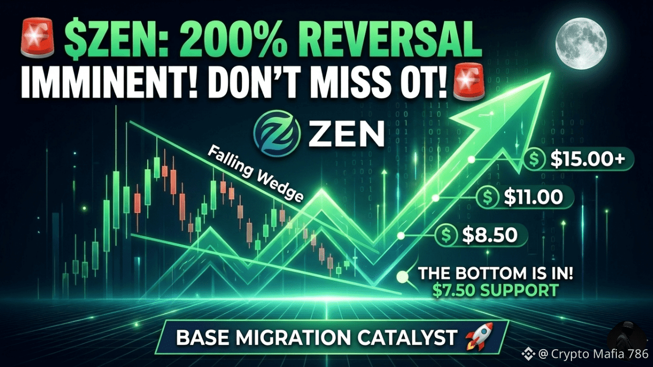 Look at the chart! $ZEN has just hit a massive support zone at $7.50, and the "Extreme Fear" in the market is your golden ticket. While others are panicking over the -41% monthly dip, the smart money is quietly accumulating.
