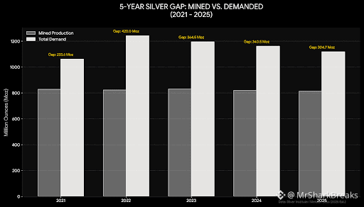 Mine production is flat because silver is mostly a byproduct. You can't just "turn on" more silver supply without opening massive new copper or zinc minesโwhich takes a decade.