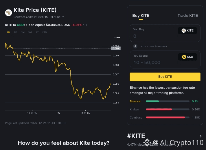 The token arrived through Binance's Launchpool in early November—the 71st project of its kind. Trading began on the third, and volume surged past $260 million almost immediately. Prices have eased back. As of today, December 24, KITE sits around $0.0904, with a market cap near $163 million and daily volume about $35.7 million. Circulating supply holds at 1.8 billion from the 10 billion total, pushing the fully diluted figure toward $904 million.
