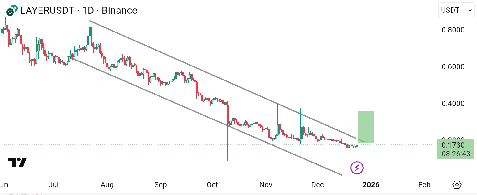 $LAYER telah mengalami penurunan di dalam saluran menurun yang terdefinisi dengan baik 📉 dan sekarang mendekati dasar saluran di sekitar $0.17, area klasik di mana penjual mulai kehilangan tenaga. Kompresi harga di level ini menunjukkan bahwa momentum penurunan mulai memudar — pemuatan pembalikan 👀.