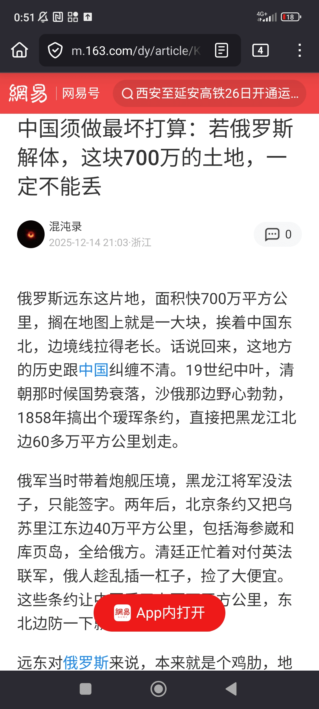 Pada pertengahan Desember, sebuah artikel berjudul "China Harus Bersiap Menghadapi yang Terburuk: Jika Federasi Rusia Hancur, Wilayah Seluas 7 Juta Kilometer Persegi Ini Tidak Boleh Hilang" diterbitkan di sebuah media online populer di Tiongkok.