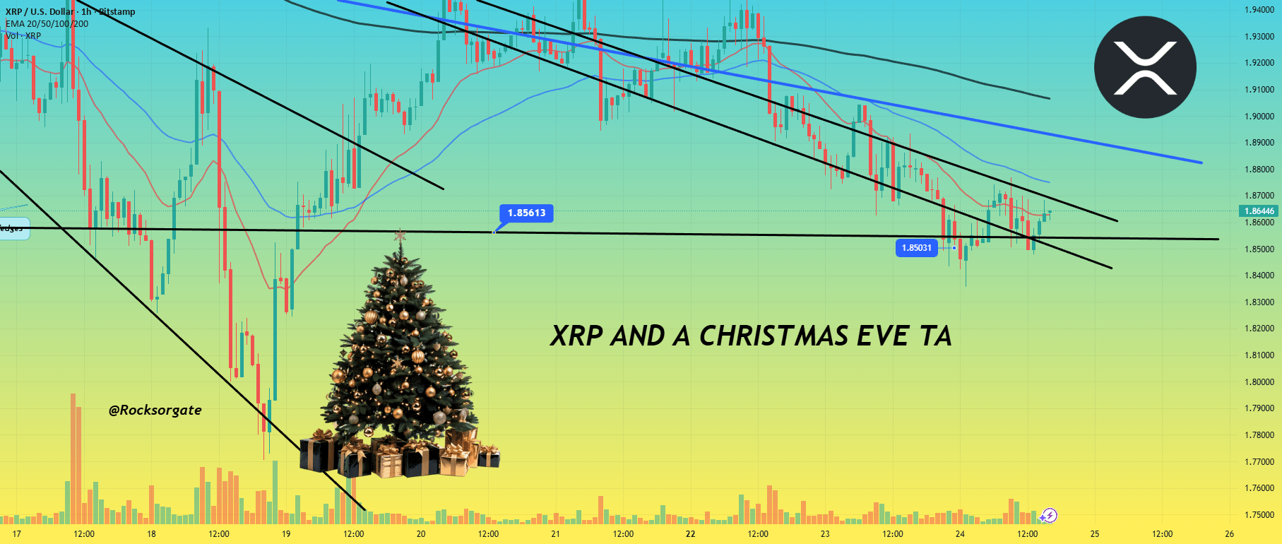 🎄 Sekarang terserah pasar untuk melihat apakah kita bisa bertahan di atas dukungan $1,85 ini, titik pivot seperti yang ditunjukkan dengan garis horizontal kami. Itu akan bertindak sebagai dukungan saat ini, terutama karena kita berada di saluran menurun yang baru terbentuk seperti yang ditunjukkan dalam garis hitam tipis ini, jadi saya akan menggunakannya sebagai referensi untuk sekarang.