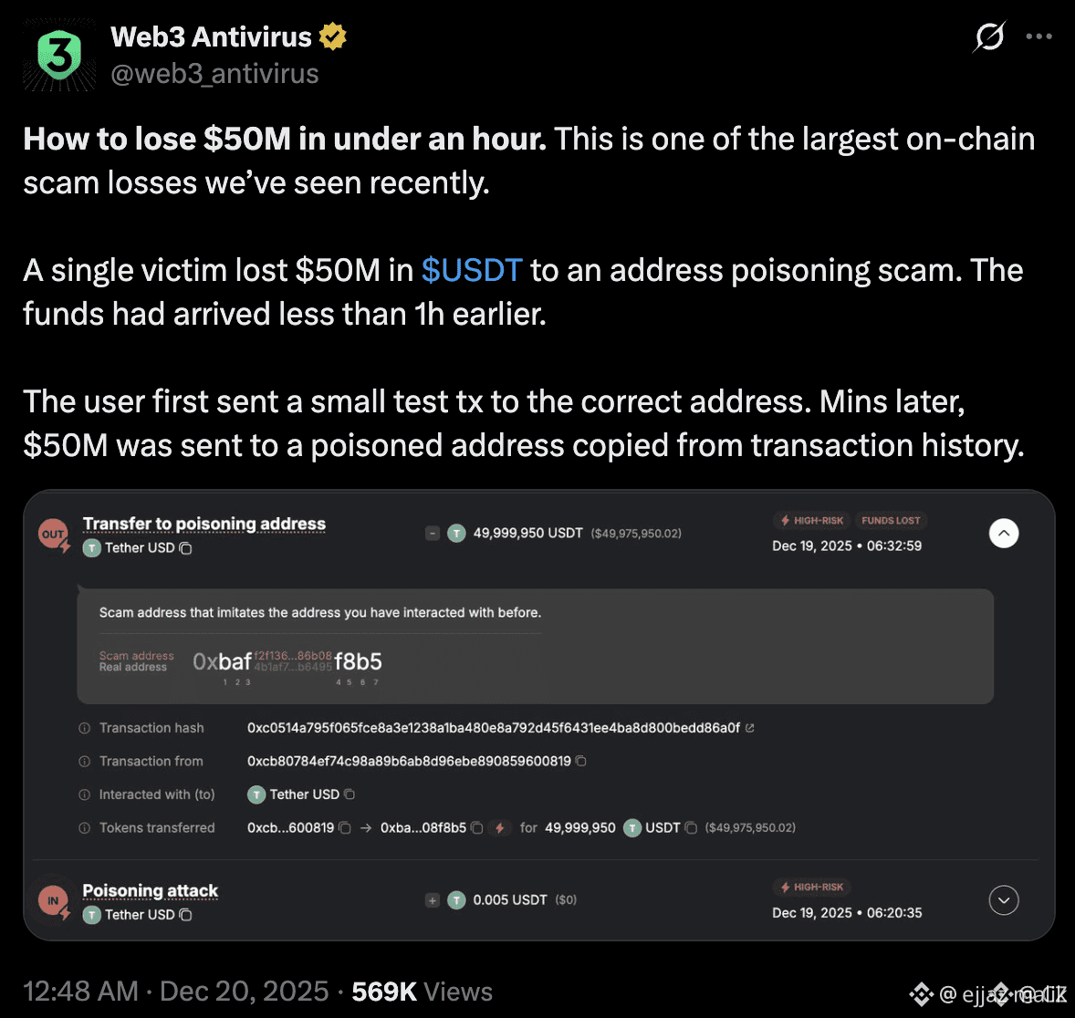 On top of that, security alliances across the industry should maintain a real-time blacklist of such addresses, allowing wallets to verify destinations before sending any transaction.