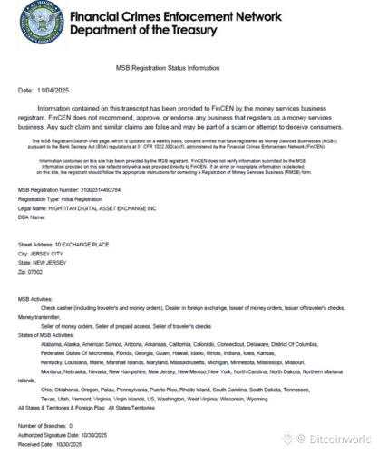 From an operational perspective, HIGHTITAN Trading Center conducts its relevant activities in the United States as a registered Money Services Business (MSB) with the Financial Crimes Enforcement Network (FinCEN). Within this framework, the platform continues to align its user service operations with internal compliance and governance requirements.