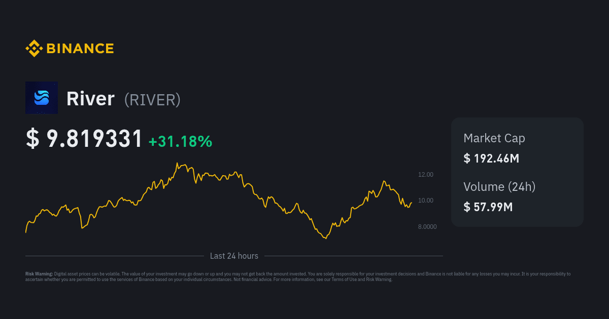 Harga terbaru: sekitar ~$9.7–$10.6 USD per RIVER di berbagai bursa utama, mencerminkan pemulihan dari level rendah baru-baru ini.