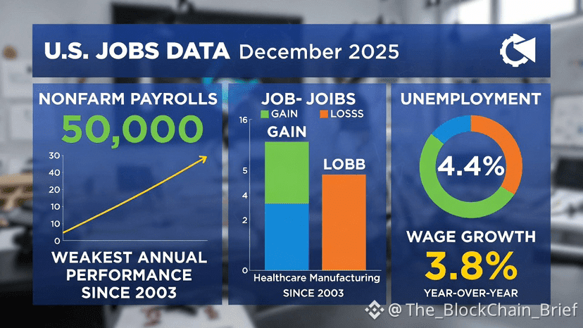 As of January 11, 2026, the latest US jobs report for December 2025, released on January 9, has solidified concerns about a cooling labor market. The Bureau of Labor Statistics (BLS) reported that nonfarm payrolls increased by a modest 50,000 jobs, below economists’ expectations of around 60,000–73,000. This capped off 2025 with total job gains of just 584,000—the weakest annual performance outside of recession years since 2003, and a sharp decline from the 2 million jobs added in 2024. #USJobsData