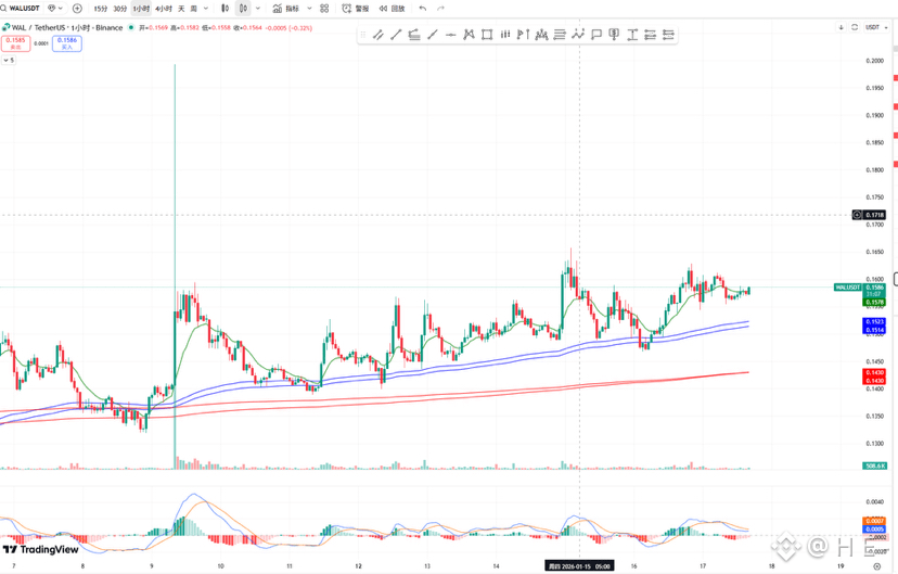 从交易角度看,$WAL 并不是情绪型标的,短期走势更多受技术结构和流动性影响。我个人更关注 1 小时级别的结构变化,尤其是价格与趋势通道、动能指标之间的配合。当前阶段如果没有明确放量突破,更适合耐心等待信号,而不是追涨杀跌。对短线来说,$WAL 更像是等确认、做结构的品种,而不是靠情绪抢第一步。