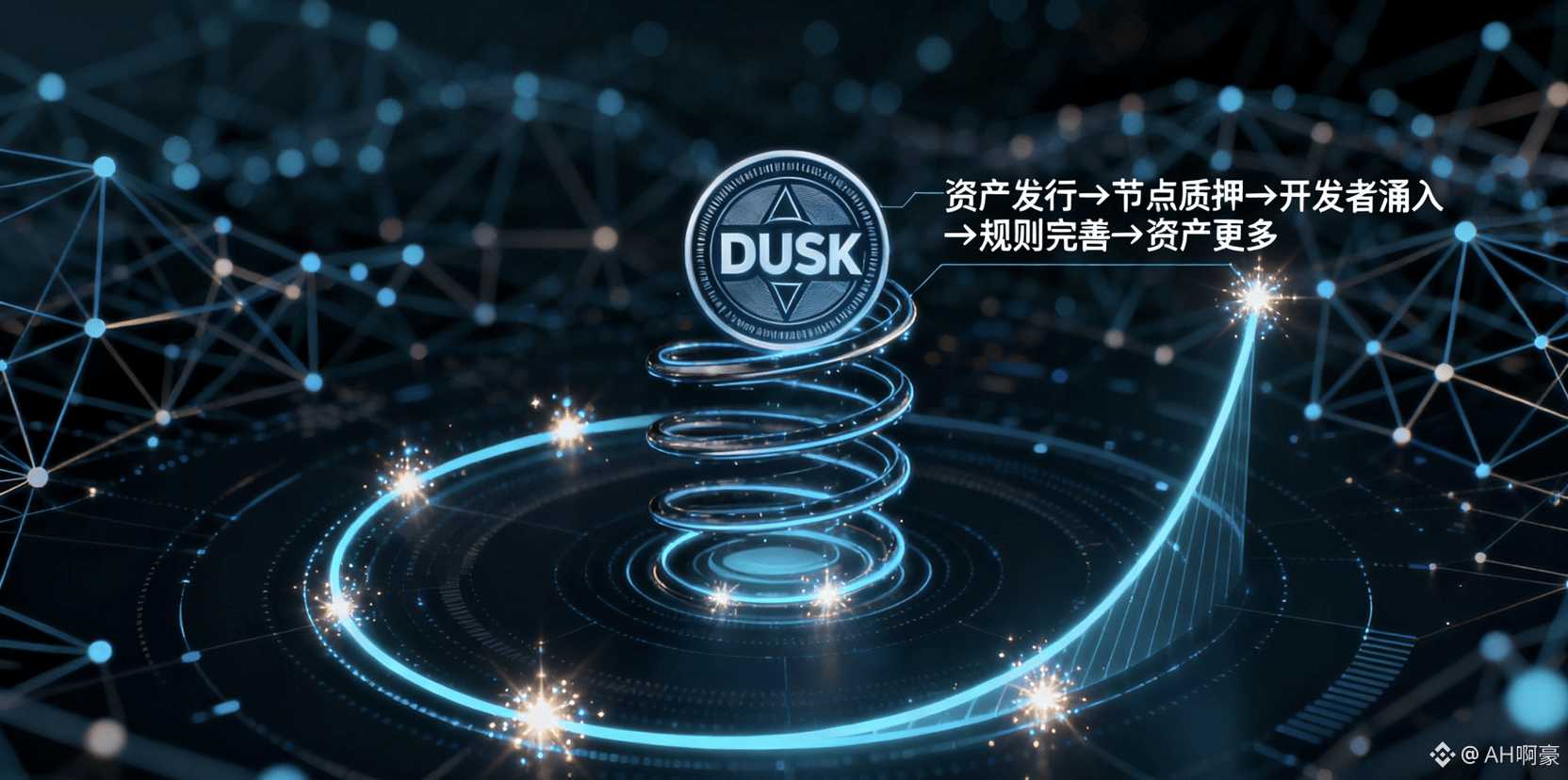 第三,DUSK的“系统价值”内嵌:作为生态信任与安全的“质押品”和“债券”。为了维护网络的安全与稳定,验证者需要质押DUSK。这不仅仅是PoS共识的安全模型要求,在Dusk的语境下,它更具深意。当网络上承载着受监管的巨额资产时,对网络稳定性和可信度的要求是机构级的。高价值的质押,既是安全保证,也是一种信誉承诺和风险共担机制。大型金融机构若要成为关键节点,其质押的巨额DUSK本身就是向生态其他参与者发出的信任信号。此外,在某些高级金融用例中(如发行有担保的债务数字证券),DUSK本身可能被协议设计为一种优质的链上抵押资产。这时,DUSK又具备了数字世界“优质债券” 的属性,其价格稳定性会受到生态内生的需求支撑。