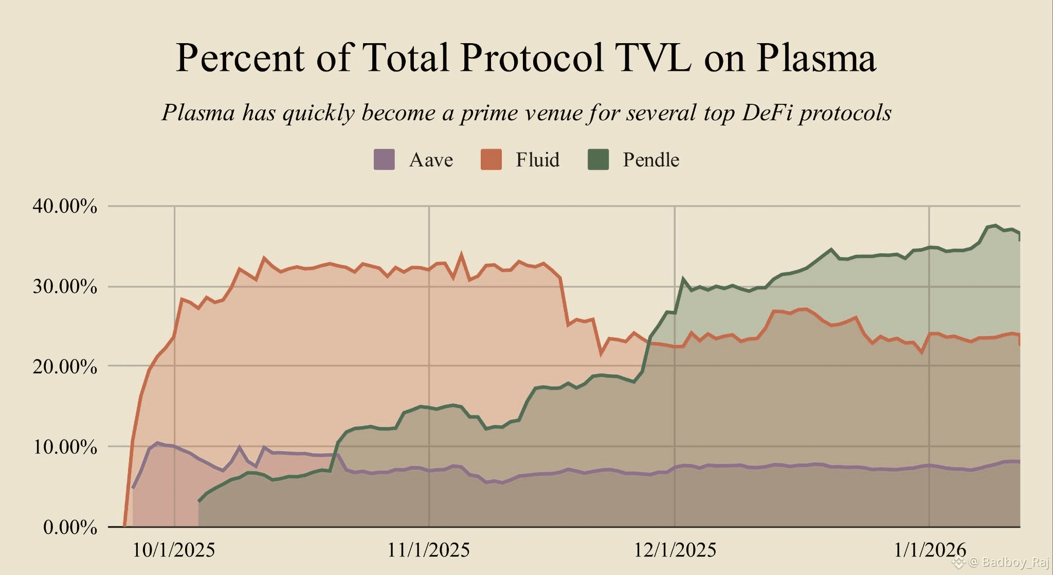 â„ Pendle leads the shift: ~35â37% of its total TVL now lives on Plasma. From near zero to dominant in a few months.