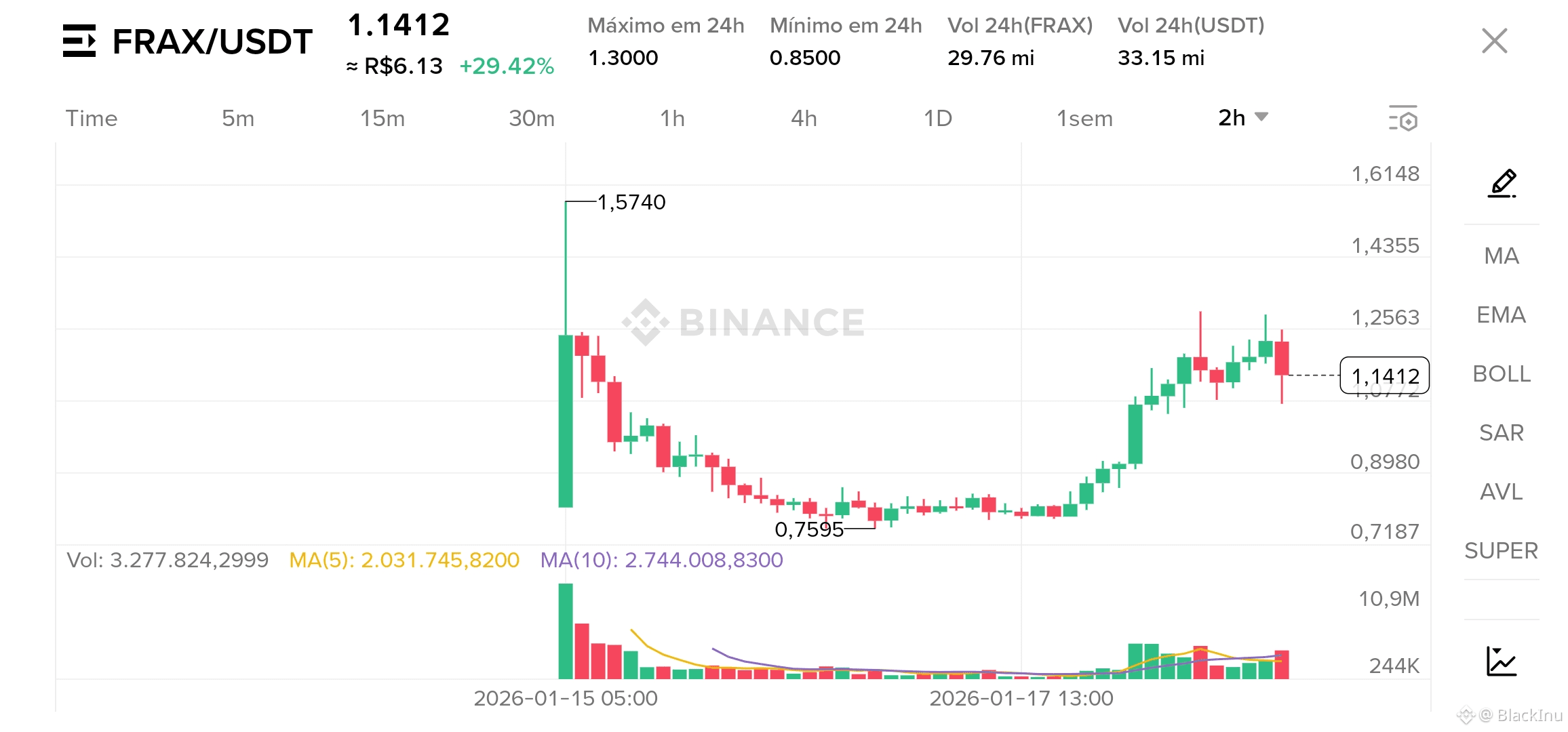 - Var. 24h: +29.42% | Máxima do dia: R$ 6.99