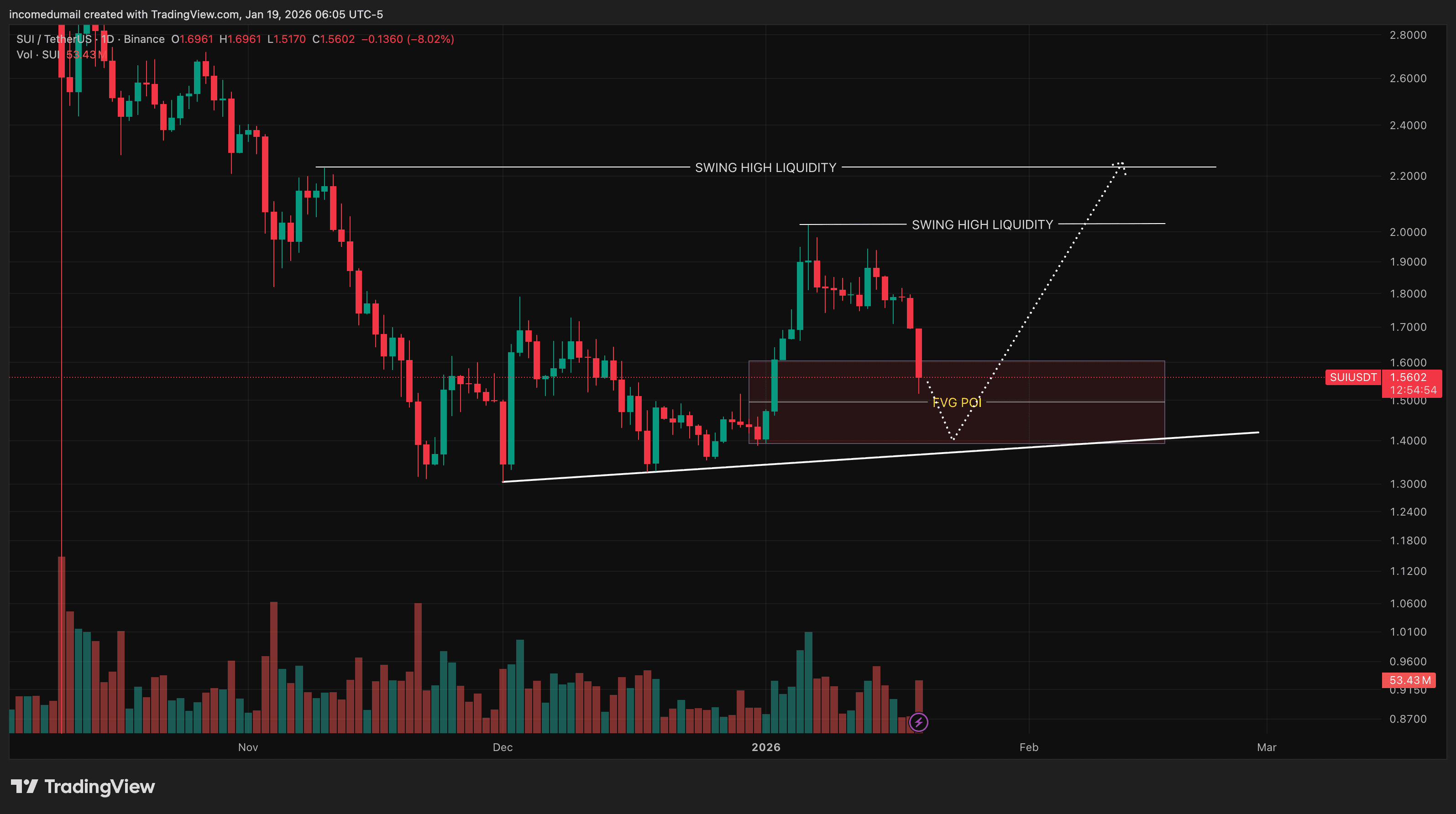 Masuk: 1.45–1.50 (POI FVG + dukungan garis tren)