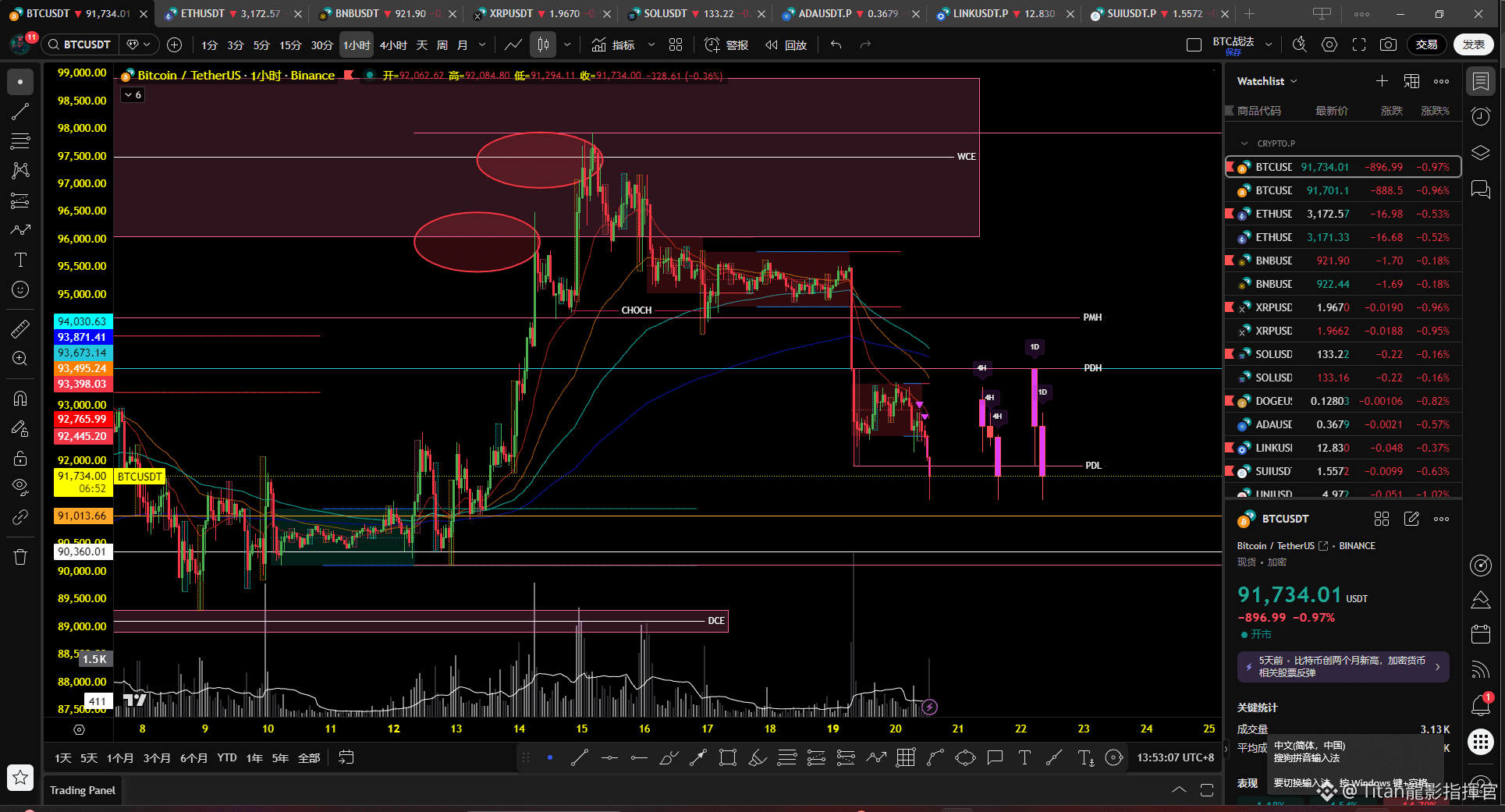 切到 1H,可以看到第二次回落後,底部低點出現了市場轉變,