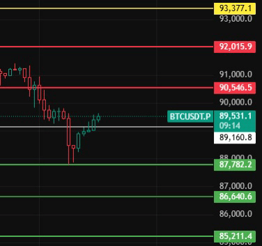Bitcoin hari ini perhatikan level 89160. Selama hari ini tidak menembus level ini, pemulihan di level satu jam akan dimulai, perhatikan tekanan di atas sekitar 90550-92015-93380!