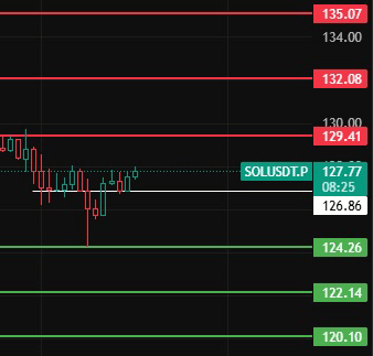 SOL hari ini perhatikan level 126. Selama hari ini tidak menembus level ini, maka pemulihan di level satu jam akan dimulai, perhatikan tekanan di atas sekitar 129-132-135!
