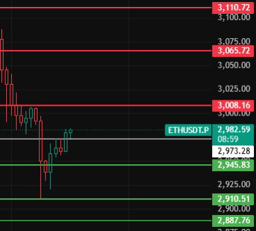 Ethereum hari ini perhatikan level 2973. Selama hari ini tidak menembus level ini, pemulihan di level satu jam akan dimulai, perhatikan tekanan di atas sekitar 3008-3065-3110!