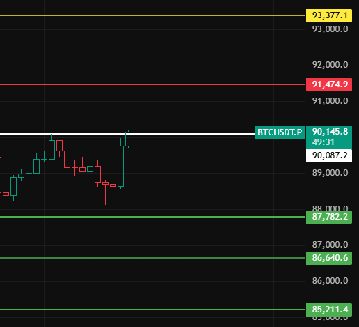 Perhatikan posisi 90100 malam ini untuk bitcoin, hanya jika bertahan di atas posisi ini level 1-2 jam, pemulihan akan berbalik menjadi tren naik yang akan mendorong pemulihan level 4 jam, perhatikan level tekanan di atas dekat posisi 91500-93380-94550!