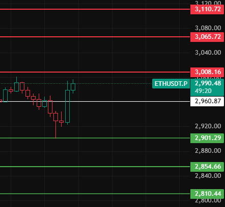 Perhatikan posisi 2960 malam ini untuk Ethereum, hanya jika bertahan di atas posisi ini level 1-2 jam baru mulai pemulihan, perhatikan level tekanan di atas dekat posisi 3008-3065-3110!