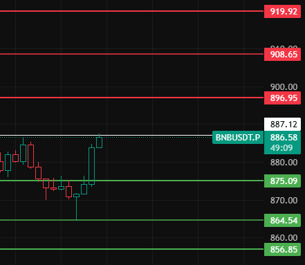 Perhatikan posisi 887 malam ini untuk BNB, hanya jika bertahan di atas posisi ini level 1-2 jam baru mulai pemulihan, perhatikan level tekanan di atas dekat posisi 897-908-920!